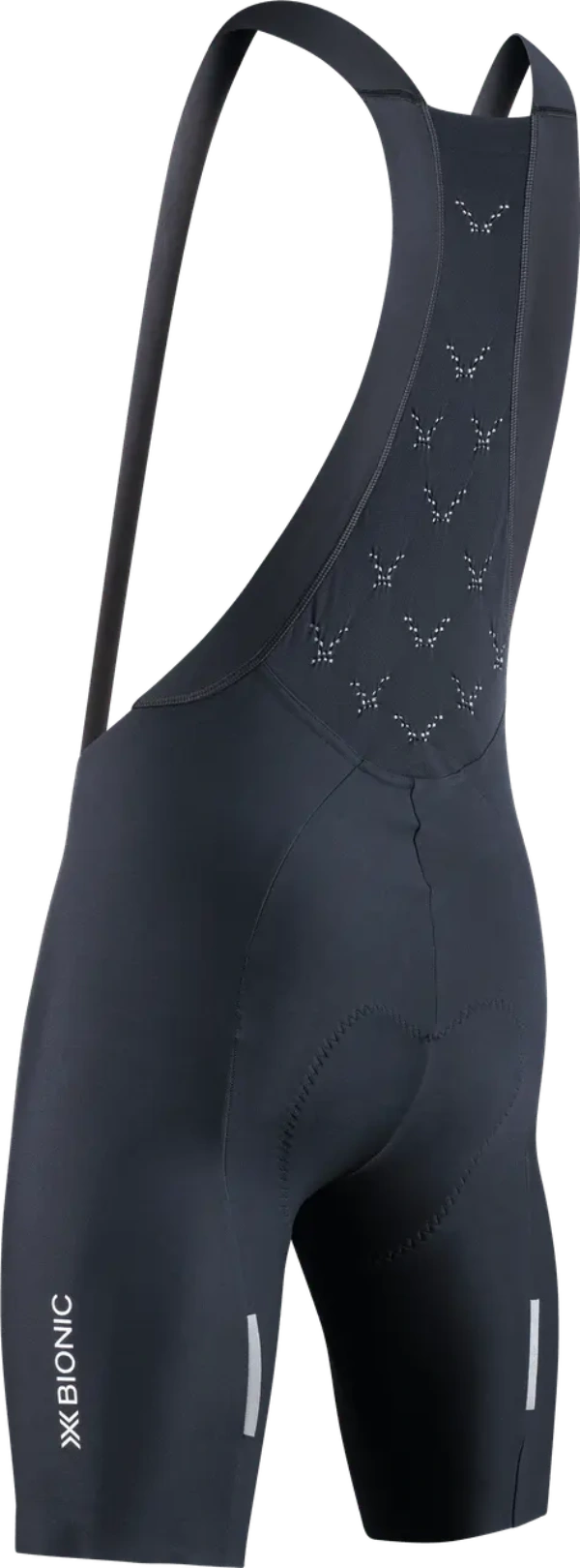 Die von X-BIONIC patentierten 3D-gestrickten Bezugsstoffe bieten geringen Abrieb, hervorragende Belüftung und eine langanhaltende antibakterielle Behandlung, die bis zu 150 Waschgänge lang wirksam bleibt. Der Silikondruck auf der Innenseite der Beine sorgt für einen perfekten Sitz und verhindert, dass die Hose während der Fahrt verrutscht.