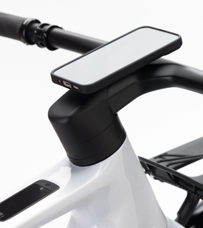 Die Komponenten und das Zubehör von Syncros verleihen dem Silence einen minimalistischen und edlen Look. Der cleane Lenker mit integriertem Cockpit und integrierter Zugverlegung, das integrierte Rücklicht für Sichtbarkeit im Großstadtdschungel und der schlanke, moderne Frontgepäckträger machen das Silence zu einem stilvollen, urbanen Fortbewegungsmittel. Praktisches Detail: Am Vorbau ist eine SP CONNECT-Halterung montiert, auf der sich das Handy sicher befestigen lässt.