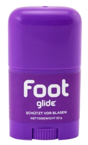 Viele erfahrene Pilger nutzen Hautschutzbalsame wie Body Glide. Sie bilden einen atmungsaktiven Film, der Reibung zwischen Haut, Textilien und Schuhen deutlich reduziert – vor allem bei Hitze.