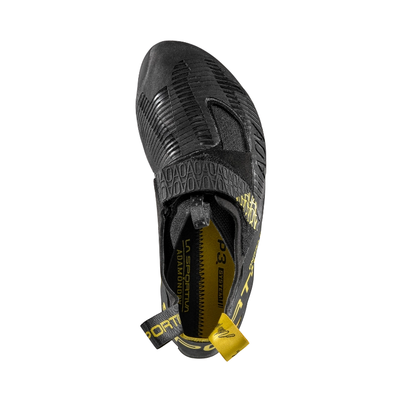 Gewicht 210 g/Schuh | Größen EU 33 bis 46 | Sohle Vibram® XS Grip2 3.5 mm mit La Sportiva SenseGrip™-Technologie | Farbe Black/Yellow | UVP EUR XX, CHF XX | Obermaterial Mikrofaser mit Veloursleder | Zwischensohle LaSpo Flex 1.1 mm nur unter den Zehenspitzen | P3 System™: stellt sicher, dass der Downturn-Shape über lange Zeit erhalten bleibt | Patente SenseGrip™-Technologie, P3-System™ | Neues Konstruktionskonzept, das es dem Fuß ermöglicht sich auszustrecken zur Maximierung der Gewichtsverteilung und Griffstärke | Geringes Fersenvolumen für maximale Präzision beim Heelhooking | Nachhaltigkeit 44 % recyceltes Gummiband, Verstärkungen und Schnürsystem mit recyceltem Bestandteil, 97 % recyceltes Material bei Fersenriemen | Einsatzbereich Indoor, Pure Performance, Super Soft | UVP EUR 195,- / CHF 215,-