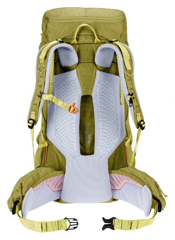 Herzstück des Aircontact Ultra ist das Aircontact-Rückensystem. Es punktet mit einer geringen Auflagefläche am Rücken. Diese ist aus einem speziellen atmungsaktiven Mesh-Material (Air Spacer Mesh). Es verbessert die Belüftung und reduziert das Gewicht des Rucksacks. Zusätzlich lässt sich die Länge des Tragesystems per Clip & Loop-Mechanismus individuell auf den Rücken anpassen. Eine optimierte Ergonomie der Hüftflossen sorgt für einen passgenauen, angenehmen Sitz und hohen Tragekomfort auf langen Strecken. Und ein Pad im Bereich der Lendenwirbelsäule optimiert die Kraftübertragung.