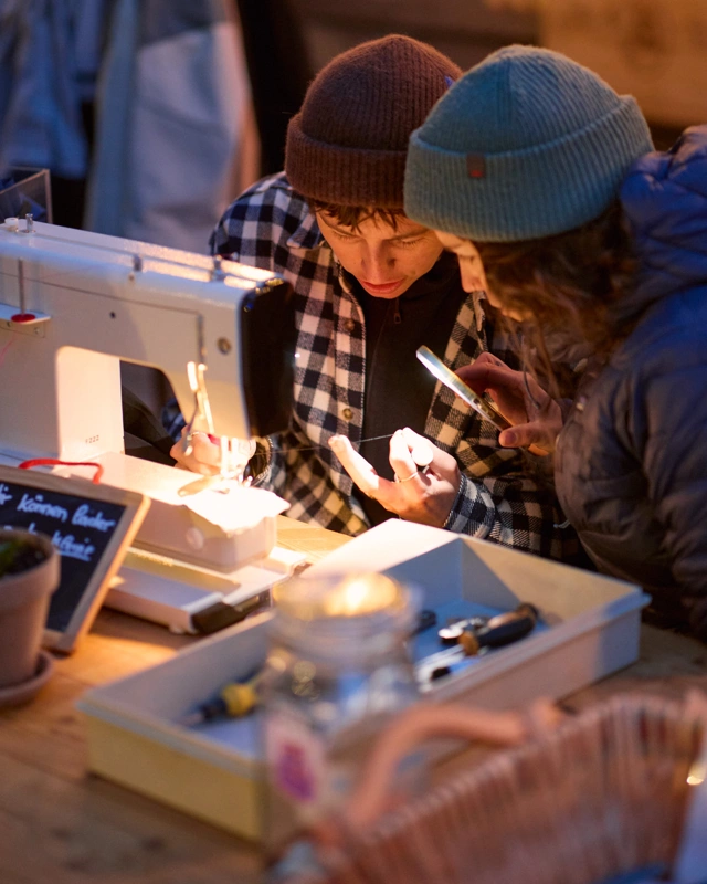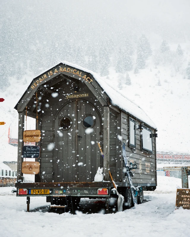 Der ursprüngliche Worn Wear Truck aus Holz und ein zweites Reparaturfahrzeug speziell für Großbritannien wurden in Eigenregie konstruiert, um die Orte mit den winterlichsten Bedingungen in ganz Europa ansteuern zu können. Ausgerüstet mit bewährten Reparatur-Tools , erfahrenen Schneider:innen und heißem Kakao für die Community,  sorgt das Worn Wear Team für eine lange Lebensdauer und gute Laune in den Wintersportgebieten. Nicht zuletzt sensibilisiert das Worn Wear Team für die verantwortungsbewusste Pflege und den sorgsamen Einsatz der eigenen Schneesportbekleidung. Persönliche Tipps zu Fertigkeiten wie Flicken, Imprägnieren und Reparieren von Reißverschlüssen sind inklusive.