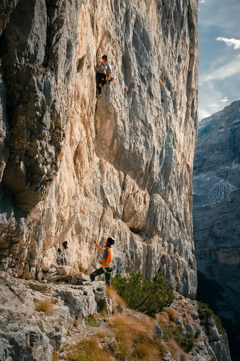 Im Herbst 2022 eröffneten die drei Alpinisten Simon Gietl, Vittorio Messini und Matthias Wurzer eine der anspruchsvollsten bohrhakenfreien Klettertouren in den Dolomiten. In der markanten Südwand des Torre Trieste, die sich 650 Meter hoch erhebt, begingen sie eine Linie, die sowohl technisch sehr heikel als auch körperlich anspruchsvoll war – und das alles ohne den Einsatz von Bohrhaken. Die Tour stellte eine echte Herausforderung dar, bei der sie sich ausschließlich auf traditionelle Absicherung und ihre Kletterkünste verließen.